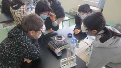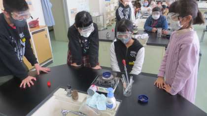 薄い塩酸に鉄や金属を溶かした液体を蒸発させて、溶けた金属がどうなったのかを調べました。