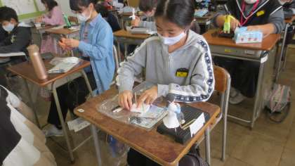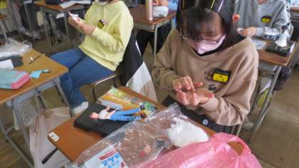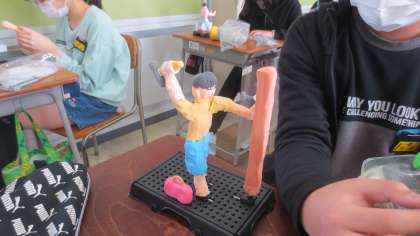 図画工作科で、将来どんなことに取り組んでいるかを想像し、立体作品づくりに取り組んでいます。紙粘土で形を整え、頑張っています!