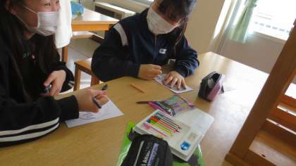 お世話になった先生たちへ感謝の気持ちを届けるために、メッセージカードの準備を進めています。