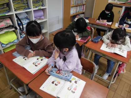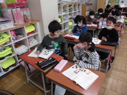 国語科で、二人で考える「これはなんでしょう」に取り組んでいます。今日は二人で相談して問題の答えを考えました。どんな順番でヒントを出すか、これから考えていきます。