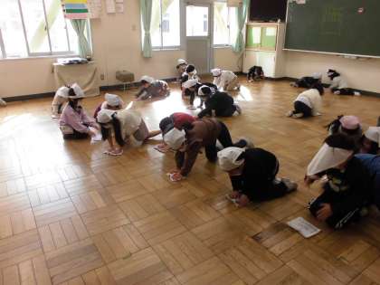 1年間学習を頑張ってきた教室を、来年度の一年生にきれいに使ってもらおうと、心を込めて清掃しました。ぴかぴかになった教室と、汚れた雑巾を見て、「たくさん頑張ったね」「次の一年生に、気持ちよく過ごしてほしいね」と話していました。