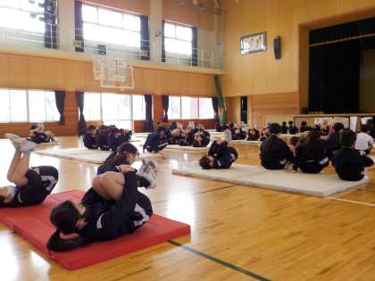 体育科では、先週から「目指せ!マットの達人」として、マットの上で体を動かしています。前転や後転だけでなく、開脚前転・後転にも挑戦しました。また3年生から、かべ倒立や側方倒立回転(側転)につながる動きも練習しました。