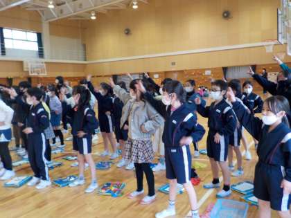 3,4年生は合同で、6年生さんが2年生の学習発表会で踊ったダンスを踊りました。