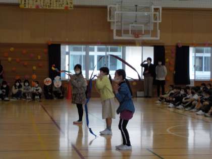3,4年生は合同で、6年生さんが2年生の学習発表会で踊ったダンスを踊りました。