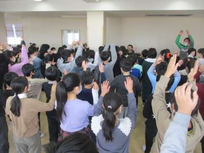 卒業お祝いプロジェクトのお疲れ様会をしました。5年生みんなで大成功を祝して万歳をし、プロジェクトごとに互いのがんばりをねぎらい合いました。
