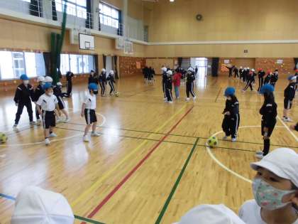 少しずつボールを蹴ったり止めたりすることが上手になってきた子供たち。まっすぐ蹴ったり、力加減を調節したりすることができるようになってきました。