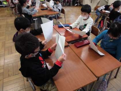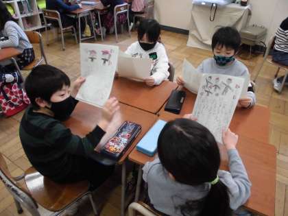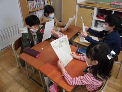 国語科の学習で、1年間を振り返り文章にしました。そして楽しかった思い出をグループで読み合いました。
