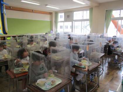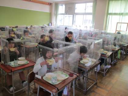 久しぶりにおいしい給食を食べ、子供たちはうれしそうでした。
