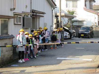 一年生のペースに気を配りながら、安全に登校できるように声をかけている姿が見られました。