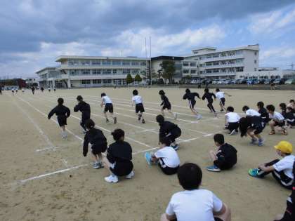 今日は3年生になって初めて学年そろって体育を行いました。外で運動会に向けて、速く走るための練習をしました。スタートのフォームや腕の振りなど、ポイントを意識して練習を頑張る子供たちの姿が見られました。