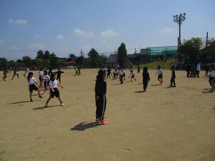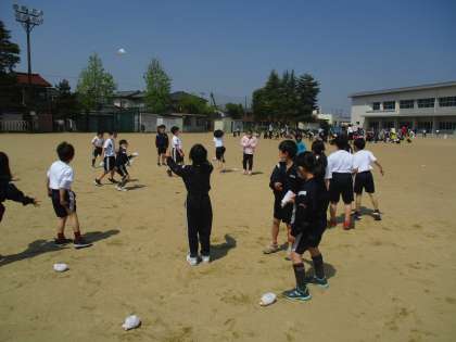 2年生になって初めてのパワーアップトレーニングは、キャッチボールでした。友達と声をかけ合って、元気に活動しました。