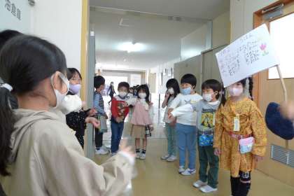 今日は、2年生が、1年生に学校のことを紹介する日です。
