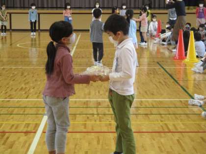 終わりの会では、去年一生懸命育てたアサガオの種をプレゼントしました。1年生がにこにこで教室に戻る姿を見て、「大作戦は大成功だ!」と大喜びでした。