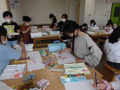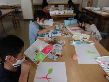 どんな形かな?どんな色かな?いつ咲く?どこに咲いている?などいろいろ想像をふくらませて、子供たちは生き生きと「まぼろしの花」を描いていました。