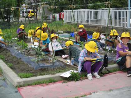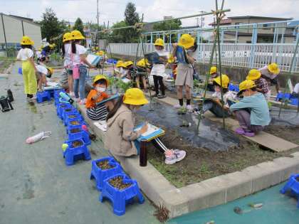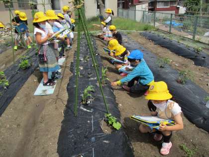 今日は畑で野菜の観察をしました。視覚、触覚、聴覚など、さまざまな感覚を研ぎ澄ませて、丁寧に観察することができました。