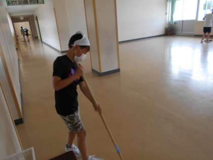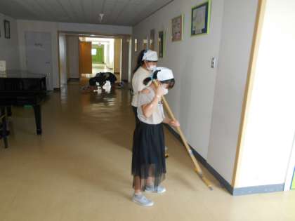 子供たちは、登校後に進んで清掃活動に取り組んでいます。学校のために黙々と働く姿はとても立派です。