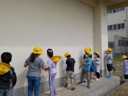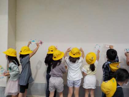 図画工作科では、透明なパックに思い思いの色を付け、光に当てて輝く様子を楽しみました。