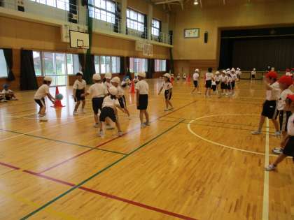 今日の学年体育は、ドッジボールをしました。投力向上を目指して、特別ルールで練習しています。