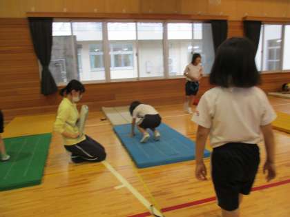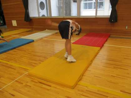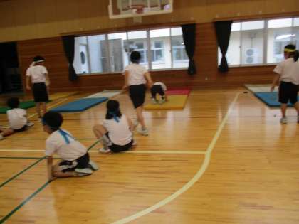 3年生になって、どのくらいの体力がついたのか、スポーツテストを始めました。子供たちは、2年生までの記録を知り、少しでも伸ばそうと一生懸命です。種目の一つである立ち幅跳びをしている子供たちの様子です。