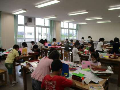 図画工作科では、「くるくるランド」の学習をしています。くるくる回る台の上に、思い思いの2つの世界をつくっています。完成が楽しみです。