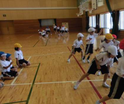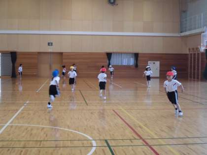 体育の時間に少しずつスポーツテストの練習をしています。今日は反復横跳びの練習をしました。子供たちはリズミカルに動けるよう、何度も練習を重ねました。最後に、増え鬼ごっこをして、とても楽しそうでした。