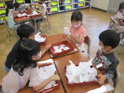 6月9日(水)1年生 図画工作科「やぶいたかみが だいへんしん」