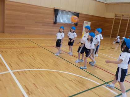 体育科でドッジボールをしました。子供たちは、チームの全員が投げることができるように協力して取り組み、飛んでくるボールには怖がらず、捕ろうと挑戦していました。