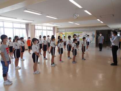 校長先生や全校の仲間の前で、大会への意気込みを伝えました。明日は大会本番です。練習の成果を発揮して頑張ってほしいです。