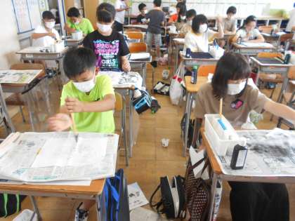 6月15日(火)6年生 図画工作科「墨と水で広がる世界」