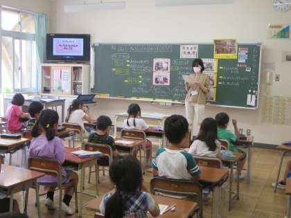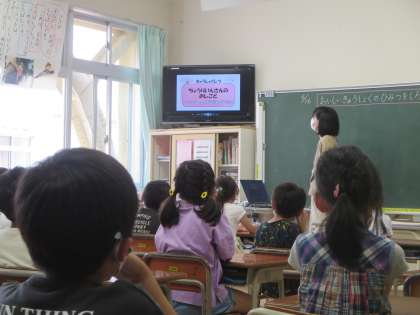 学活の時間に栄養教諭を講師に招いて、給食についての学習を行いました。