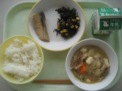 今日の献立は、ふくらぎの西京焼き、ひじきのソテー、豆腐の野菜あんかけ、ごはん、牛乳です。