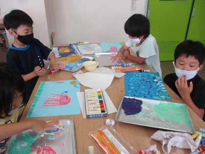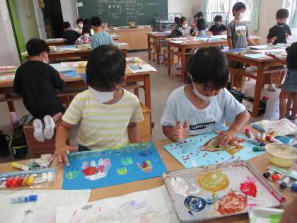 6月24日(木) 2年生 図画工作科 液体粘土でスイミーの世界を表そう