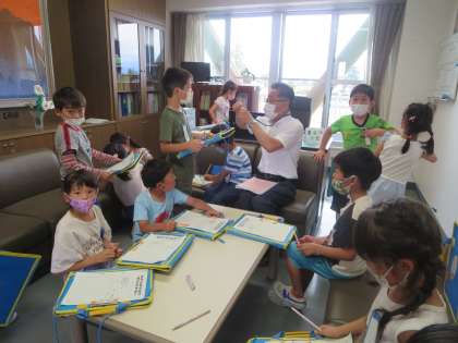 休み時間にさまざまな先生に自分たちから話しかけに行きます。