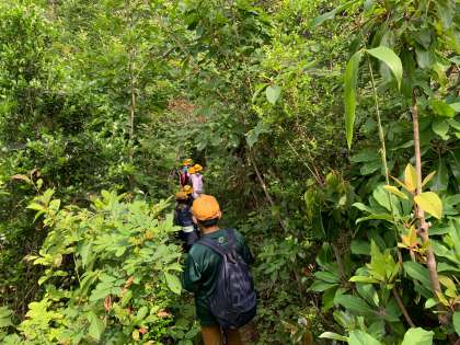 班で声をかけ合いながら、険しい山道を進んでいます。