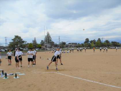 8種目の体力測定に挑戦中です。昨年度より記録を伸ばそうと目標をもって取り組んでいます。