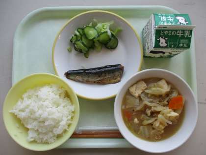 今日の献立は、イワシの紀州煮、きざみ和え、韓国風すきやき、ご飯、牛乳です。