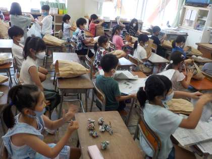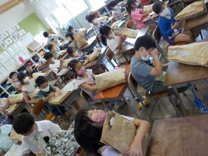2学期の授業が始まりました。子供たちの楽しく学ぶ姿が見られました。図画工作科では、紙袋や新聞紙の感覚を楽しんでいました。
