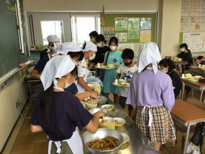 給食の時間は、感染症予防のために黙って準備し、黙って食べる子供たち。しっかり約束を守っている子供たちに感心するばかりです。