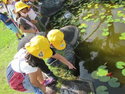 子供たちは、生き物見つけを楽しんでいます。