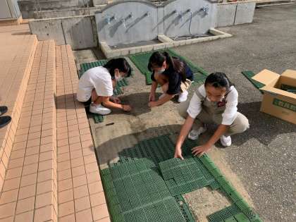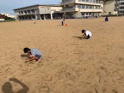 登校してから朝の会までの時間は、学校のためになることを自分で考えて取り組んでいます。最近はグラウンドの草むしりや玄関掃除を行う子供たちがたくさんいます。