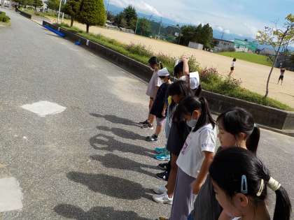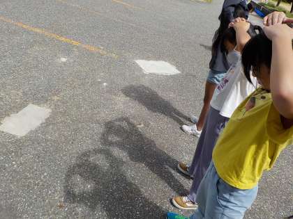 休み時間にかげおくりをしました。 ポーズを工夫して、何度も挑戦しました。