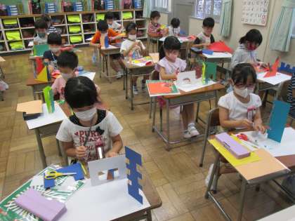 9月7日(火)1年生 図画工作科「おって たてたら」