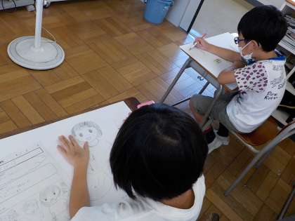 楽しかった出来事やうれしかった出来事を自由に紙に表していました。