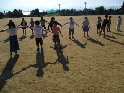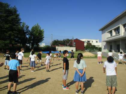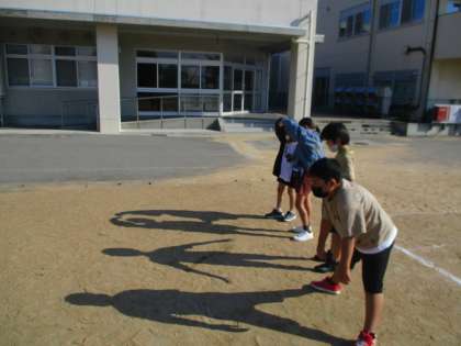 国語科で「ちいちゃんのかげおくり」の学習をしています。担任の「今日はかげおくりのできそうな空だなぁ」の言葉をきっかけに、かげおくりにチャレンジしてみました。青い空に自分たちのかげが浮かび上がるように見えた瞬間、「あー上がった!」と歓声が上がっていました。