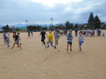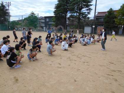上に高く跳ぶスキップと前に速く進むスキップを行いました。子供たちは動きの違いを感じながら楽しく運動に取り組みました。