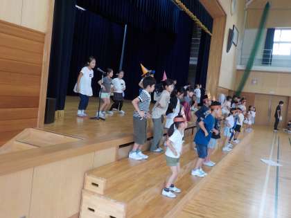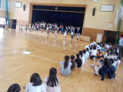 2年生学習発表会の練習の様子です。一つ一つの動きを確認しながら、毎日こつこつ、本番に向けて力を合わせて頑張っています。