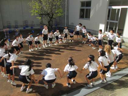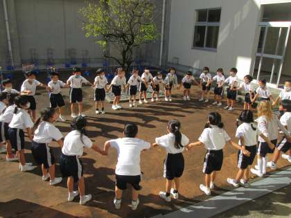 みんなは、手をつないで、まるいわになると、