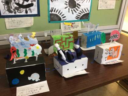 6年生 図画工作科 クランク作品を展示中