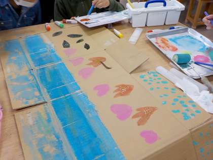 次の時間に、段ボールを組み立て直し、鑑賞する予定です。