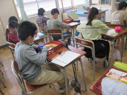家庭科では、身の回りを整理・整とんするよさについて学習しています。子供たちは、自分のお道具箱を眺め、必要なものと必要でないものに分け整理し、必要なものを整とんしました。普段、よく使うものを手前に入れる等、工夫していました。